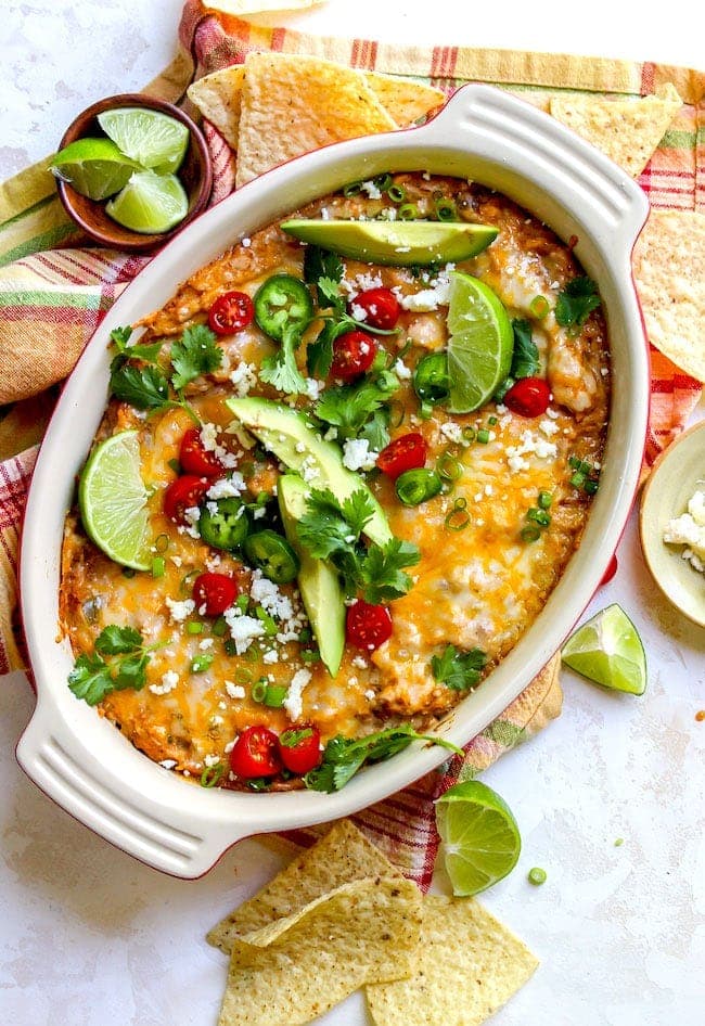 This dip bakes until hot and bubbly, perfect for scooping with tortilla chips or even Loaded Nachos! Pass the margaritas please.